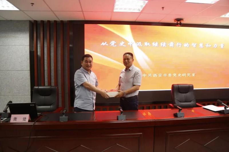 龚建老师在授课前向我局赠送了《百年征程、红色西安》、《燎原星火耀古城》、《红色地标》、《红色星辰》、《红色年轮》等“七一”新编的学习教育资料。